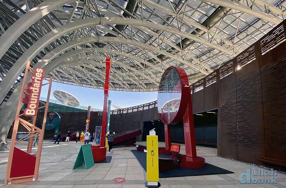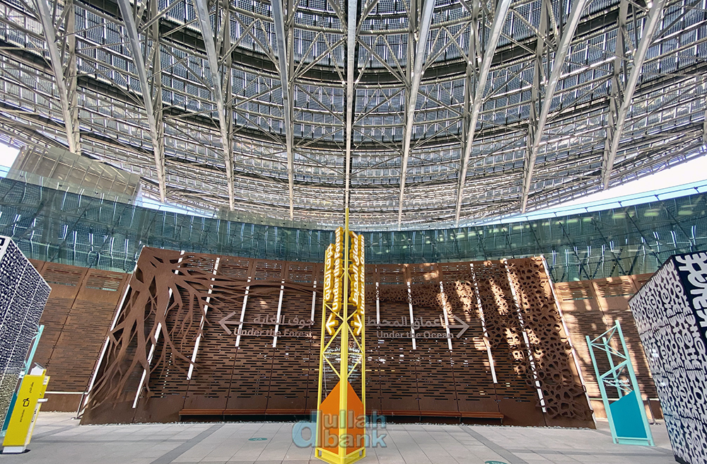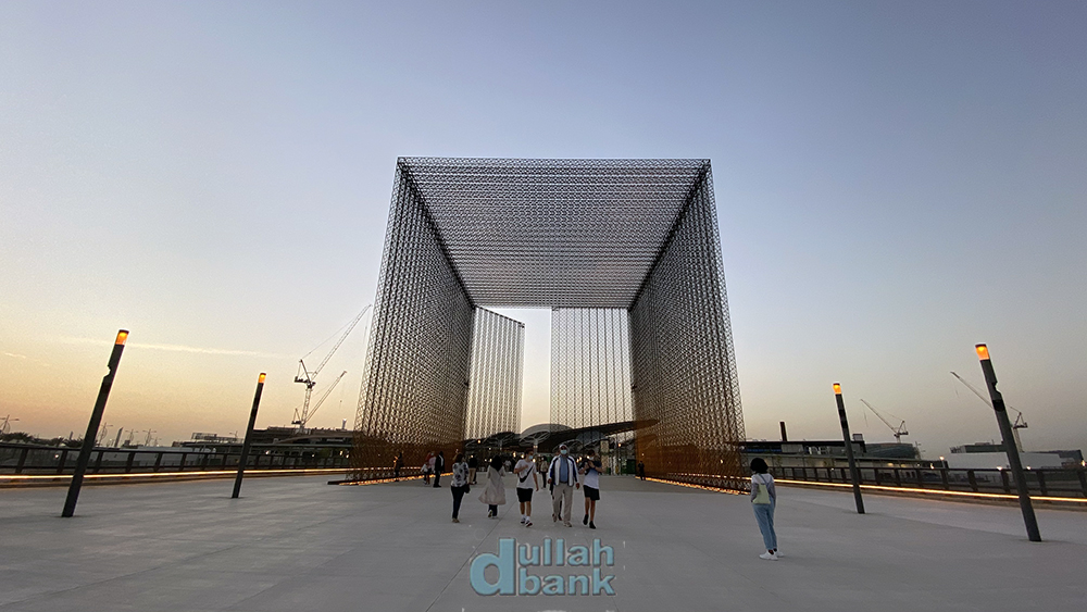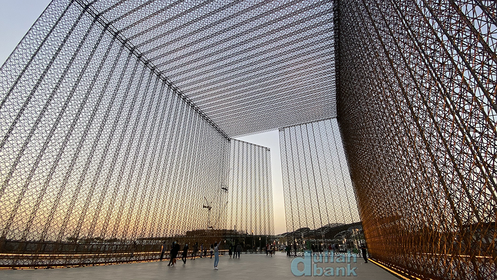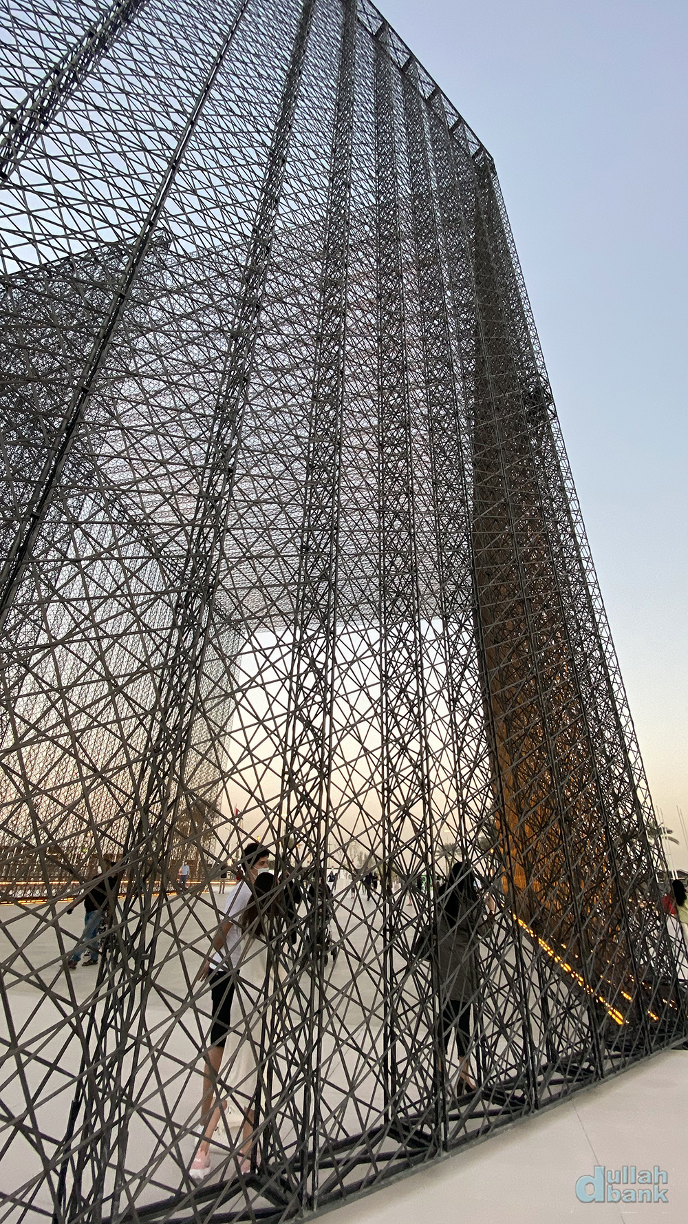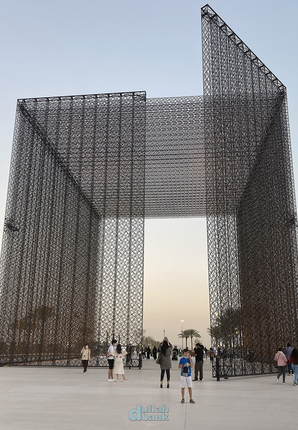 각 테마관의 입구에는 영국에서 활동하는 건축가 아시프 칸이 설계하여 초경령 탄소섬유 소재를 사용해 아랍의 전통 건축양식인 마슈라비야를 초현실적인 이미지로 형상화했다는 높이 21미터, 폭 21미터, 길이 30미터의 포털이 방문객을 맞이합니다.