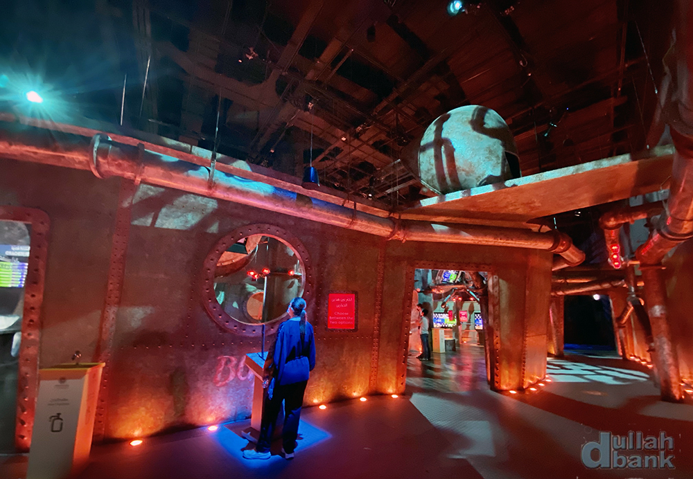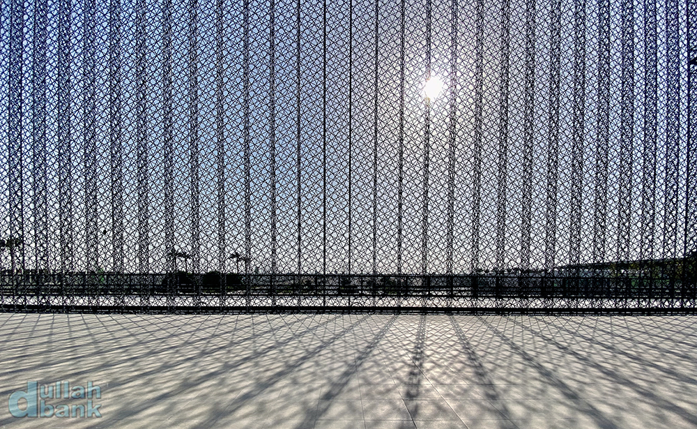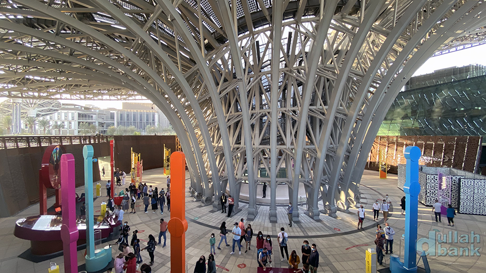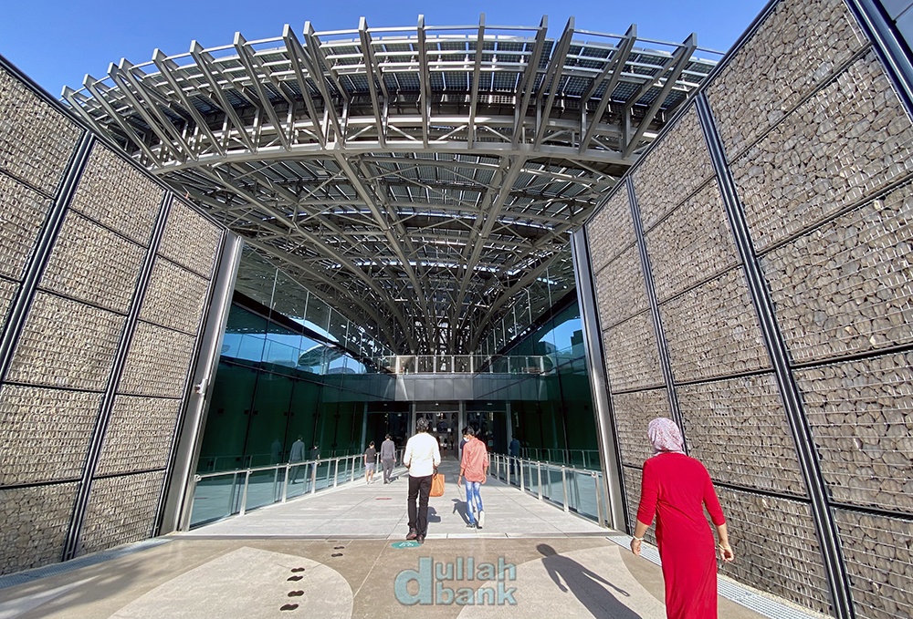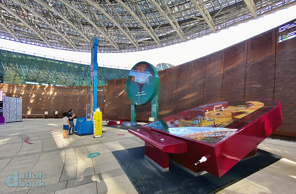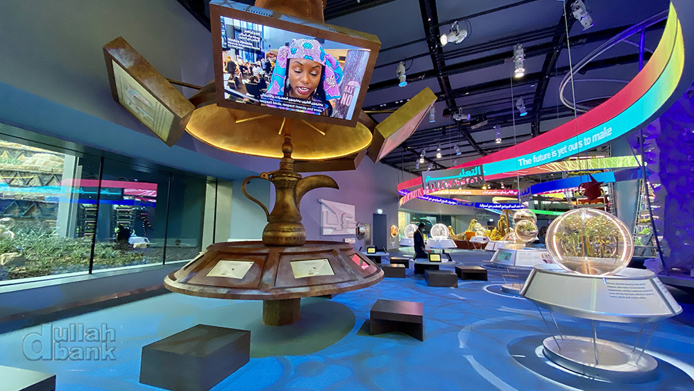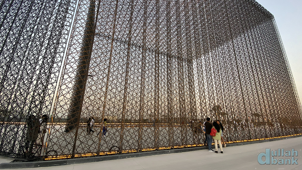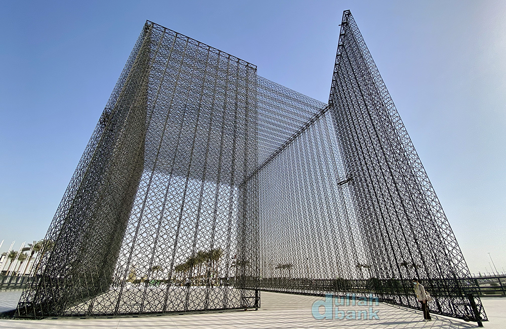 각 테마관의 입구에는 영국에서 활동하는 건축가 아시프 칸이 설계하여 초경령 탄소섬유 소재를 사용해 아랍의 전통 건축양식인 마슈라비야를 초현실적인 이미지로 형상화했다는 높이 21미터, 폭 21미터, 길이 30미터의 포털이 방문객을 맞이합니다.