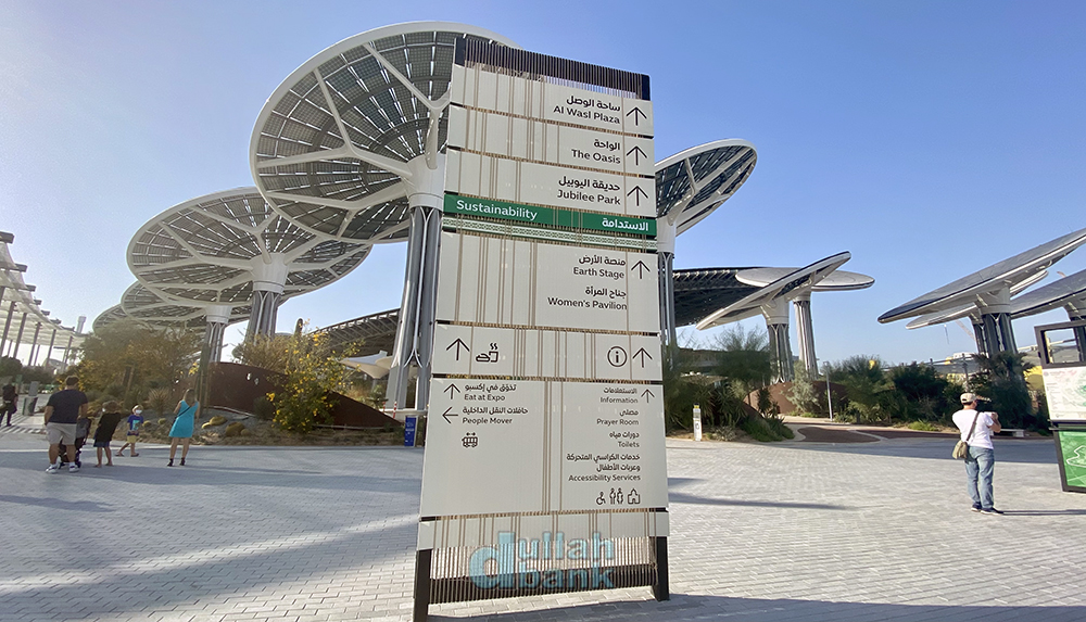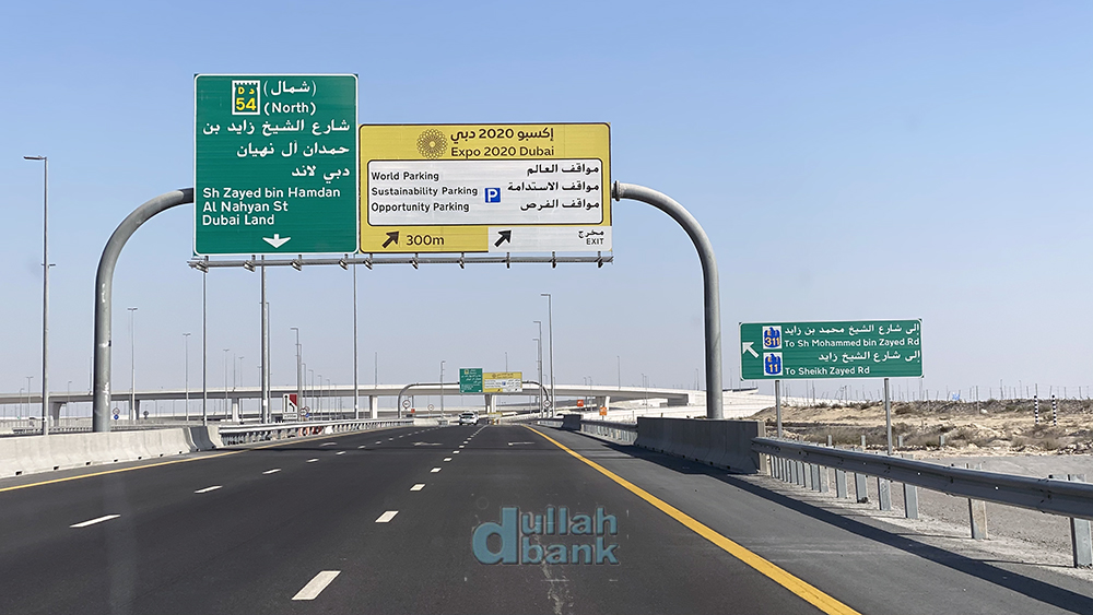 선공개 이벤트 소식을 듣고 주말인 금요일 오후를 이용해 방문해보기로 했습니다. UAE 내 도로 안내판에는 엑스포장으로 향하는 길안내를 확실히 해주고 있습니다. 녹색 표지판에 엑스포장행임을 노란색으로 강조해서 알려주기 때문이죠. 엑스포장 일대에는 다양한 지역에 주차장이 있기 때문에 헤매지 않으려면 자신이 방문하는 파빌리온의 주차장으로 가야 합니다.
