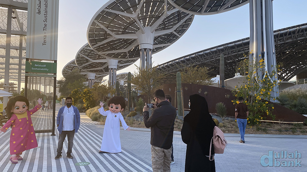 공식 마스코트 라쉬드와 라티파의 탈을 쓴 행사요원들이 방문객들과 함께 사지는 찍어주는 모습을 볼 수 있습니다. 팔다리가 없는 서브 테마 마스코트인 가디언 알리프, 테라, 옵티는 어떤 식으로 구현할지....