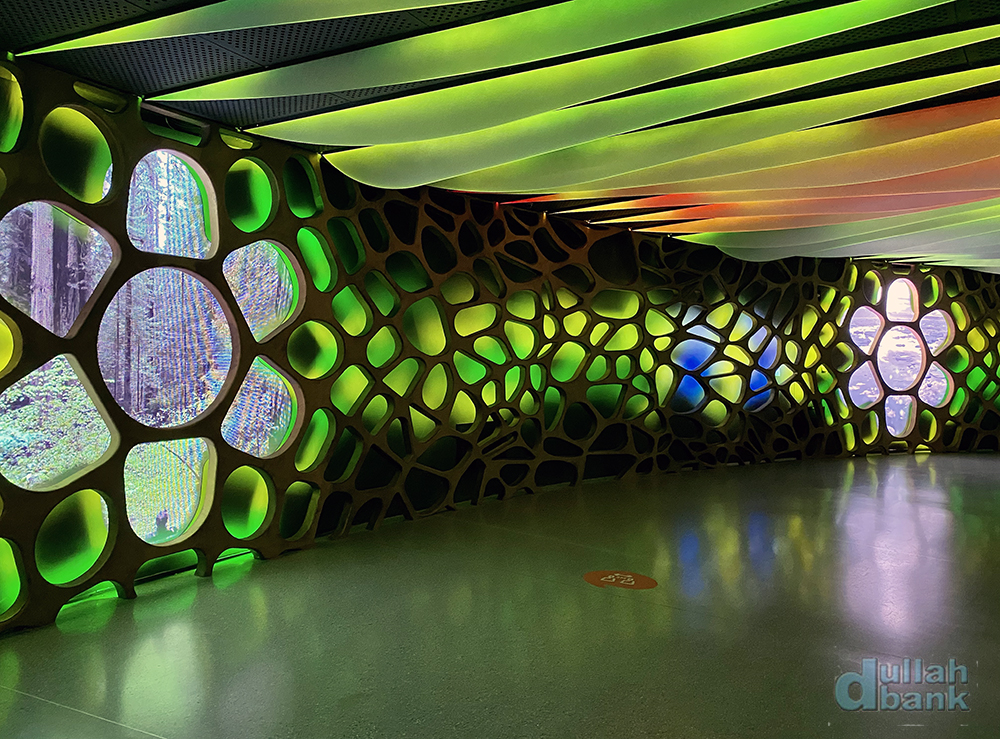 지속가능성관은 현대식 건축디자인과 효율적인 프로젝션, 조형물을 활용하여 자신들이 내세운 테마를 강조하는 두 바이스러운 공간 디자인이 엿보이는 곳이었습니다. 조직 위원회 측은 자신만만한 모습이지만, 각국, 혹은 지역에서 치러야 할 선발전이 있는 올림픽보다는 그나마 낫지만, 워낙 유동적인 코로나 19 상황으로 인해 두바이 엑스포가 당초 계획한 규모로 열릴 수 있을지는 현시점에선 예측이 어렵다는 게 변수네요.