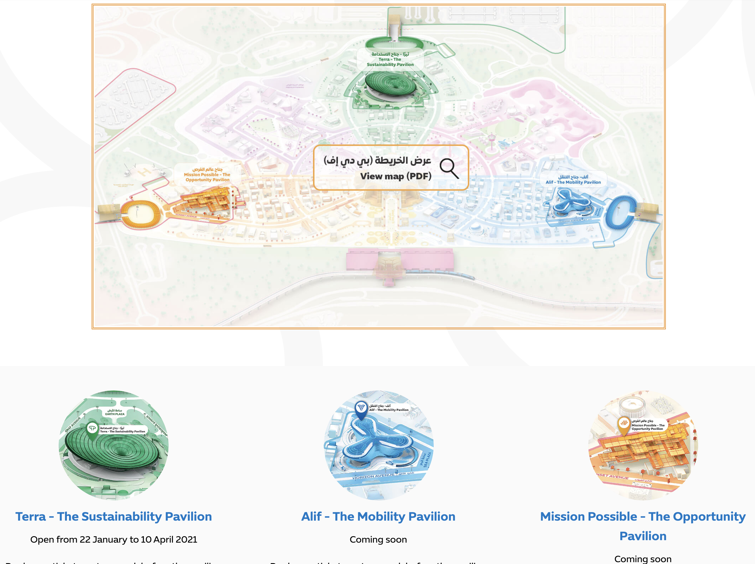 전 세계를 강타한 코로나 19의 여파로 도쿄 올림픽과 마찬가지로 두바이 엑스포도 1년 연기된 가운데, 두바이 엑스포 조직 위원회는 엑스포 2020 파빌리온 프리미어라는 타이틀을 앞세우고 1월 22일부터 두바이 엑스포 3대 서브 테마관의 맛보기 이벤트를 진행 중입니다. 코로나 19로 인해 일정이 연기된 와중에도 사람들의 관심 몰이, 그리고 이미 뽑아놓은 운영인력들의 적응을 돕기 위한 예행연습을 겸한 이벤트로 보입니다. 일종의 예열이랄까요?