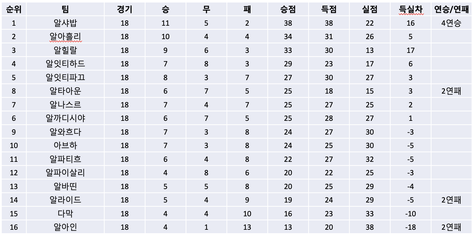 2. 리그 순위