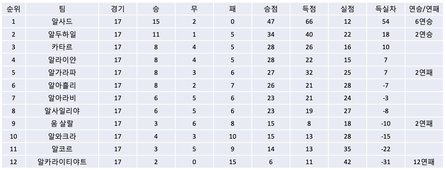2. 리그 순위