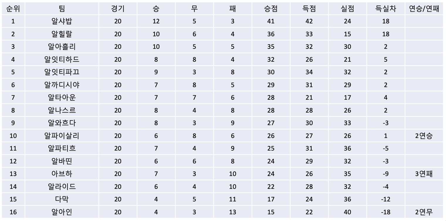 2. 리그 순위
