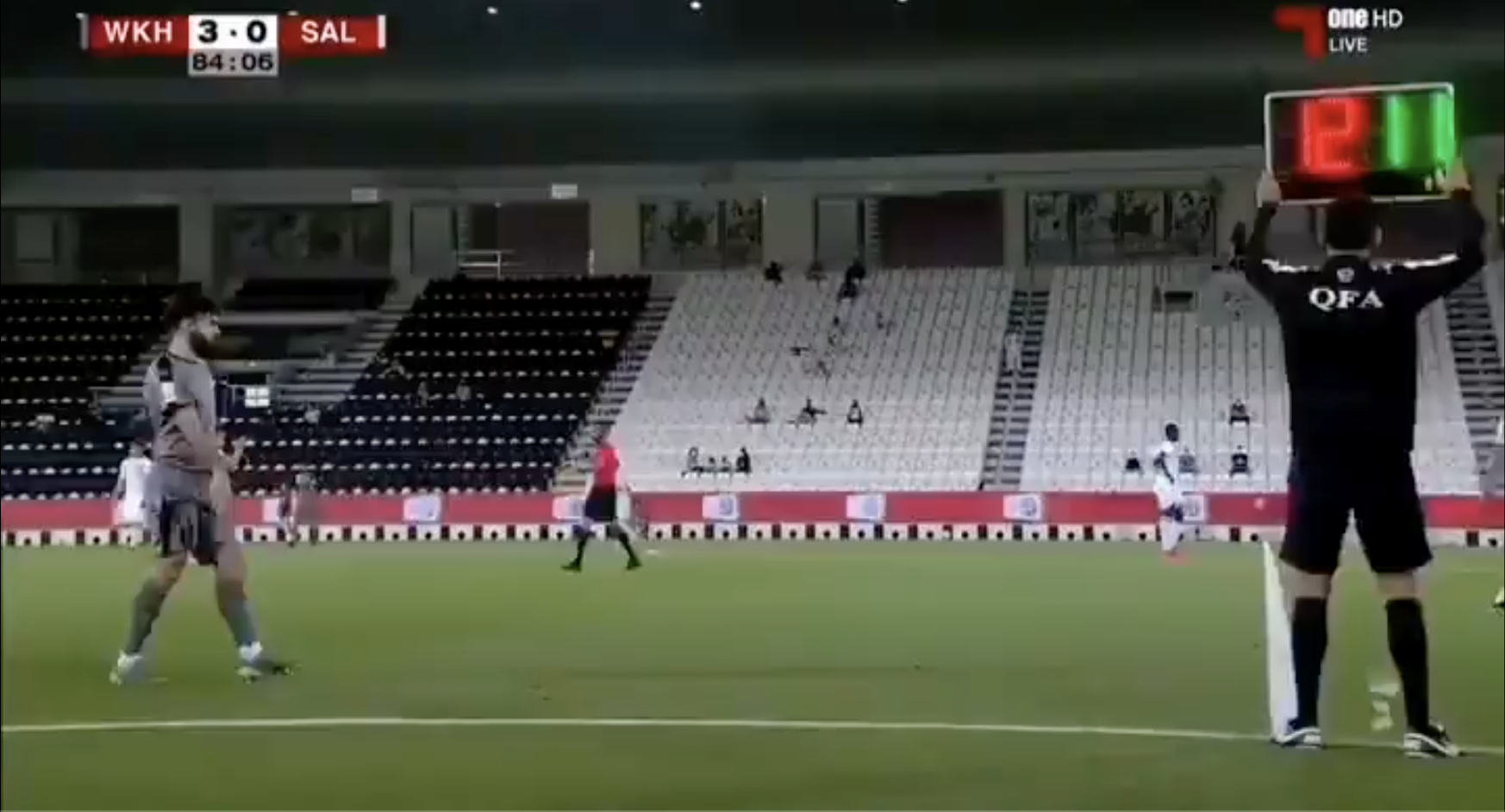 1) 리그컵 4강전 첫 경기인 알와크라와 알사일리야의 경기에서는 오마르 알리의 멀티골을 앞세운 알와크라가 3대0으로 승리를 거두고 결승에 선착하는 듯 했지만...... 부정선수가 출전했다는 알사일리야의 제소가 받아들여져 알사일리야가 몰수게임승을 거두고 결승에 진출하게 되었습니다. 알사일리야의 몰수게임승은 3골차를 리드하며 사실상 승리가 확정된 알와크라가 후반 40분 선수를 교체하는 과정에서 제출된 선수명단에 포함되어 있지 않았던 공격수 자심 알갈라비 (11번)을 투입하는 어처구니없는 실수를 저질렀기 때문입니다. 교체 명단에 8명을 올려놓고 두 명을 교체한 상황에서 세번째 교체 선수로 투입 가능한 다섯명의 옵션이 있었음에도 굳이 명단에 없는 선수를 투입한 것이죠. 1명의 골키퍼와 3명의 수비수, 4명의 미드필더로 공격수가 없는 교체 선수명단을 제출한 알와크라는 3골차의 리드로 굳이 공격수를 넣지 않고 잠궈도 되는 상황에서 명단에도 없던 공격수를 굳이 넣는 이해할 수 없는 교체로 경기 자체를 이겨놓고도 탈락하는 빌미를 제공했습니다.