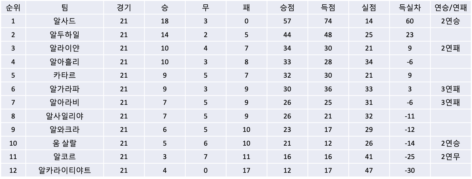 4) 막판 5연승을 달리고 있던 알두하일은 두두의 선제골을 지키지 못하고 강등을 피하려는 의지를 보인 알코르와 무승부를 거두면서 2부 리그로의 다이렉트 강등은 일단 피했습니다.