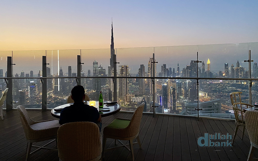 SLS 두바이는 해질 무렵 밤이 찾아오는 다운타운 두바이를 내려다보며 식사할 수 있는 풍경 맛집 식당입니다.