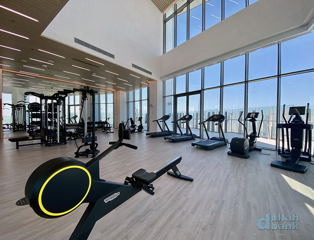짐에서는 다운타운 두바이 일대의 풍경을 내려다보며 운동을 즐길 수 있습니다.