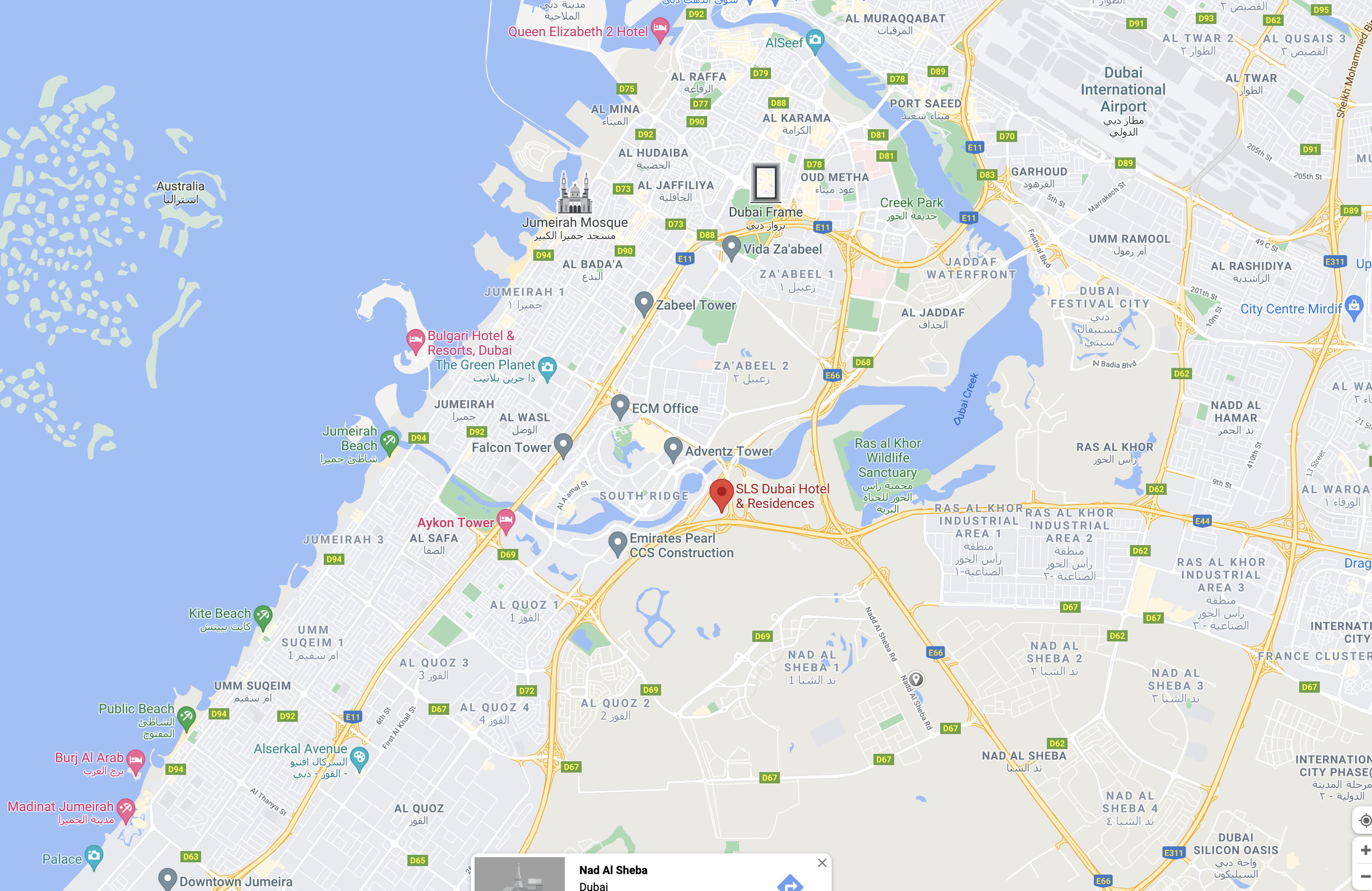SLS 두바이가 두바이 내에서도 독보적인 전망을 자랑하는 이유는 바로 그 위치에 있습니다. 서쪽으로는 다운타운 두바이와 비즈니스 베이, 북쪽으로는 두바이 국제공항을 위시한 구시가 (feat 샤르자), 동쪽으로는 두바이 크릭과 두바이 크릭하버, 남쪽으로는 무함마드 빈 라쉬드 시티의 한복판에 우뚝 서 있기 때문입니다. 파라마운트 타워만 빼면 시야를 가릴 것이 없는 곳에서 관조적인 시선으로 두바이의 핵심 지역을 내려다 볼 수 있으니 말이죠.