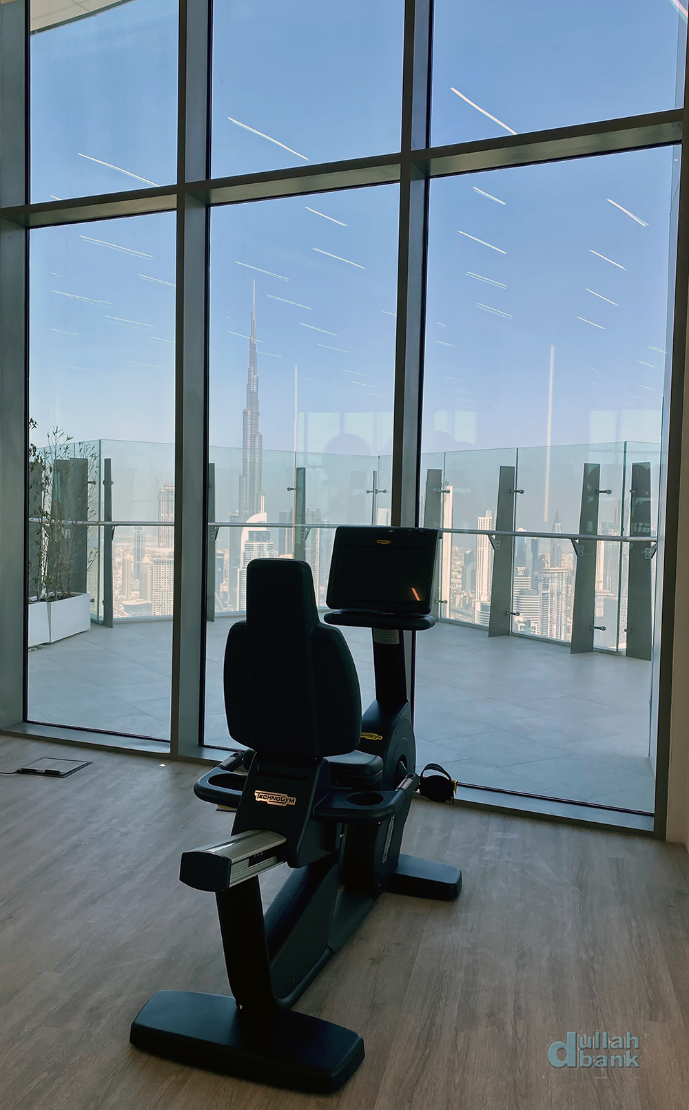 짐에서는 다운타운 두바이 일대의 풍경을 내려다보며 운동을 즐길 수 있습니다.