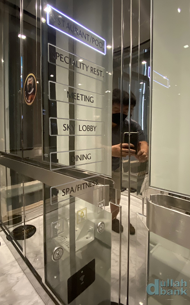 호텔 투숙객이기에 두번째 엘리베이터는 71층과 58층 사이를 연결합니다. 여기서 알 수 있는 건 70층은 식당, 69층은 스파와 피트니스 시설이 있다는 것.
