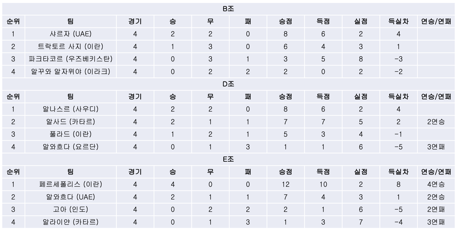 트락토르 사지 (이란) 1:0 알꾸와 알자위야 (이라크) (4월 23일 19:00/ 샤르자 스타디움)