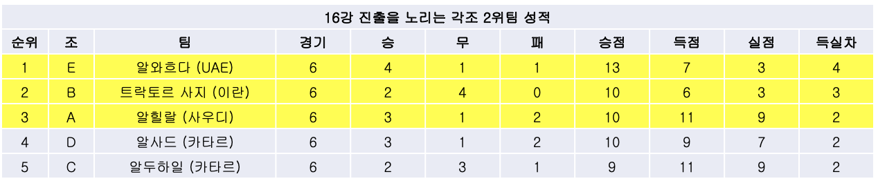 3. 16강 진출팀