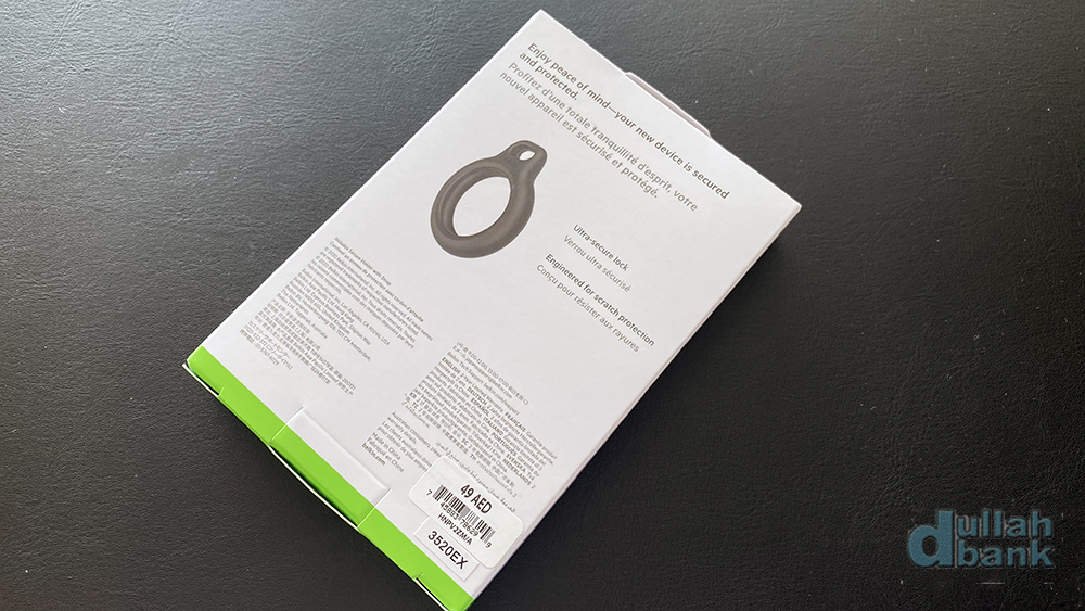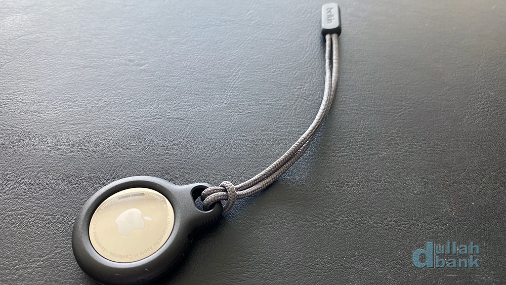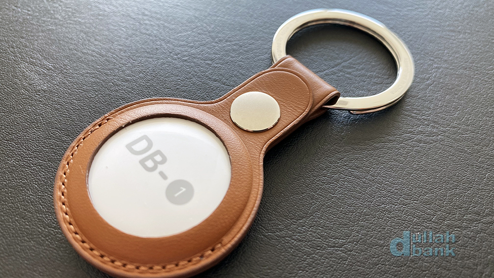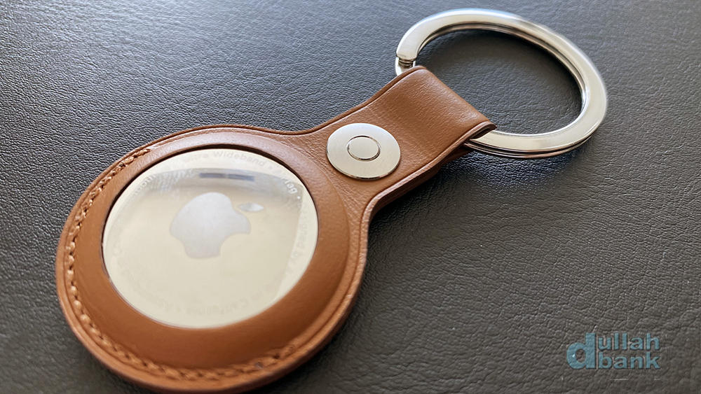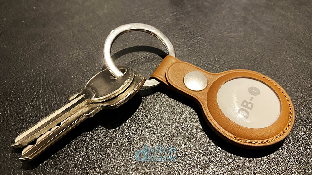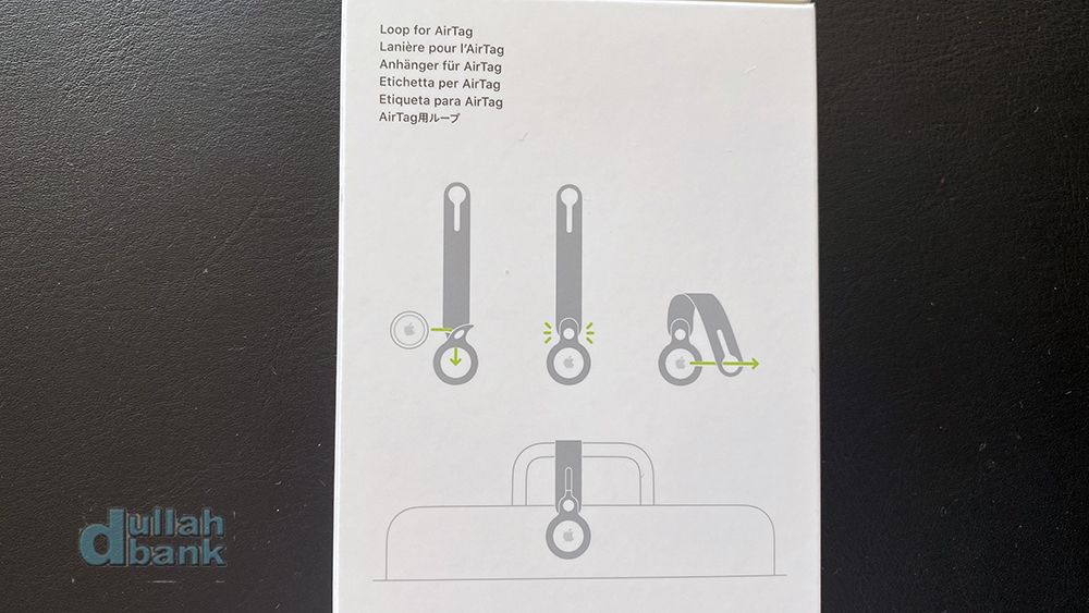 더스트백을 열면 3파트로 나뉘어진 가죽 키링과 에어태그가 들어있습니다.