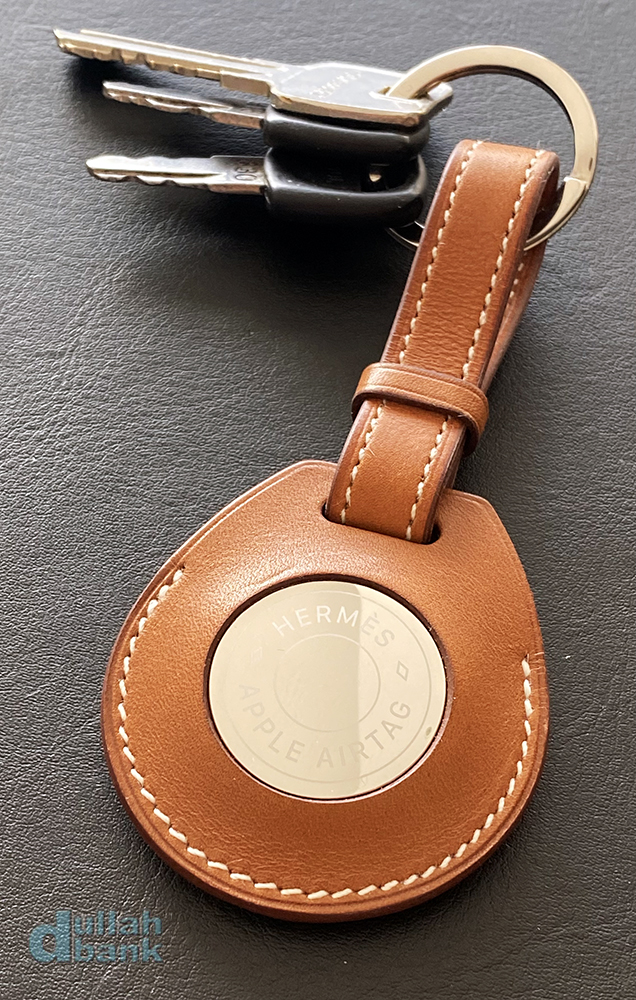 이쯤에서 보는 에어태그 에르메스 가죽 키링과 케이스 크기 비교.