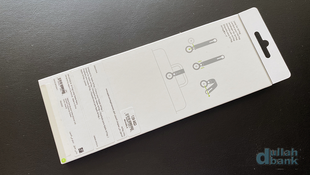 더스트백을 열면 3파트로 나뉘어진 가죽 키링과 에어태그가 들어있습니다.