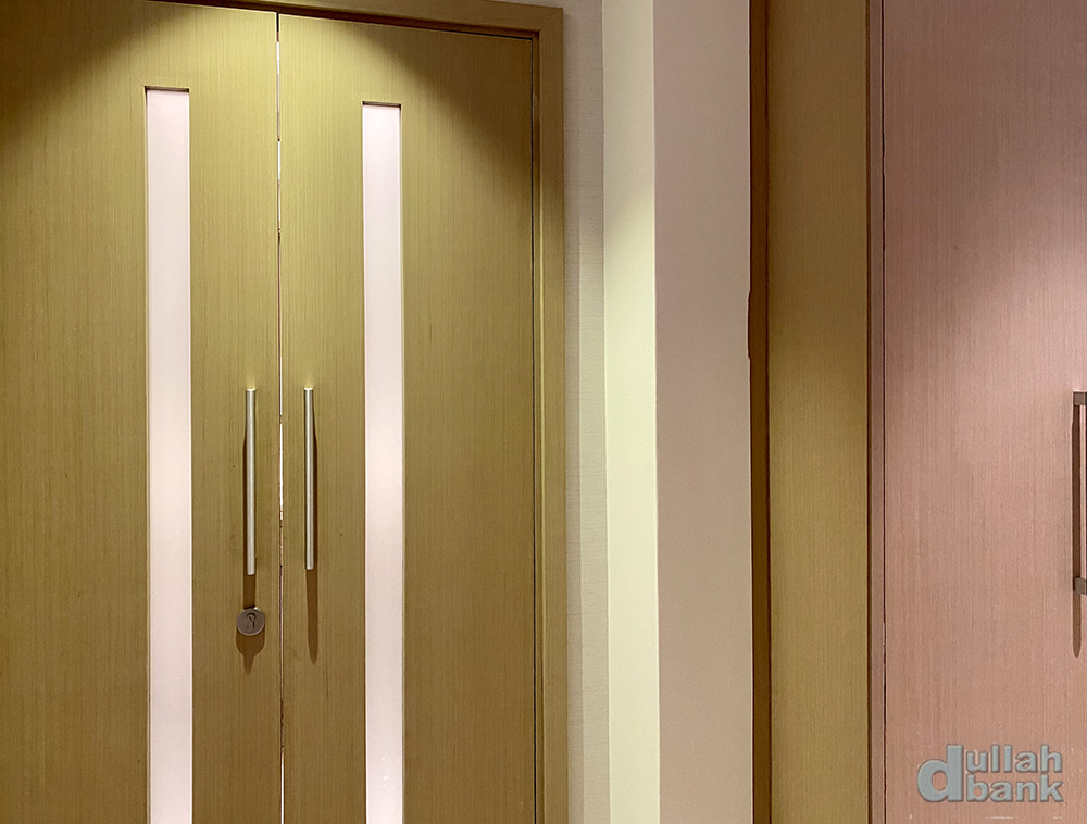 제가 묵은 방 입구 왼편에 있는 두 개의 나무로 된 문 중 앞에 있는 것은 화장실 문.