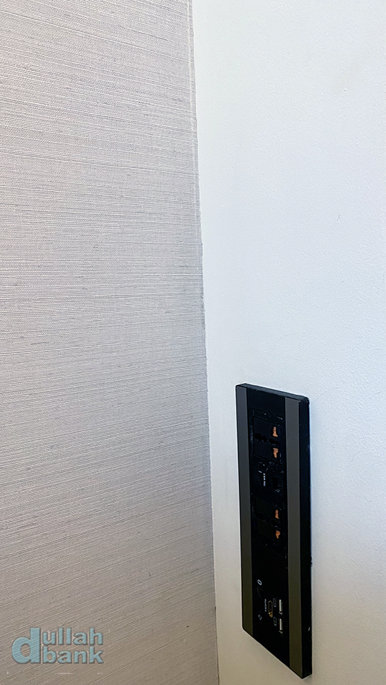 원형 테이블만 봐서는 전원을 연결하기 어렵겠다 싶겠지만, 테이블과 두 개의 의자가 놓여진 공간 옆 벽에는...