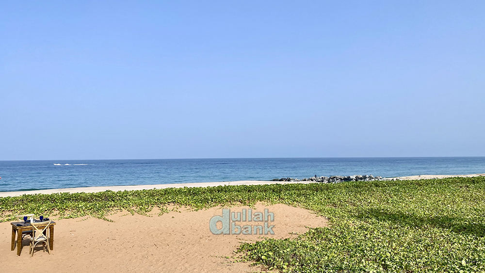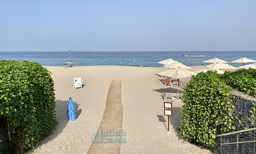 해변가를 가로지르는 저 돌무더기는 리조트와 퍼블릭 비치를 구분하는 경계선입니다.