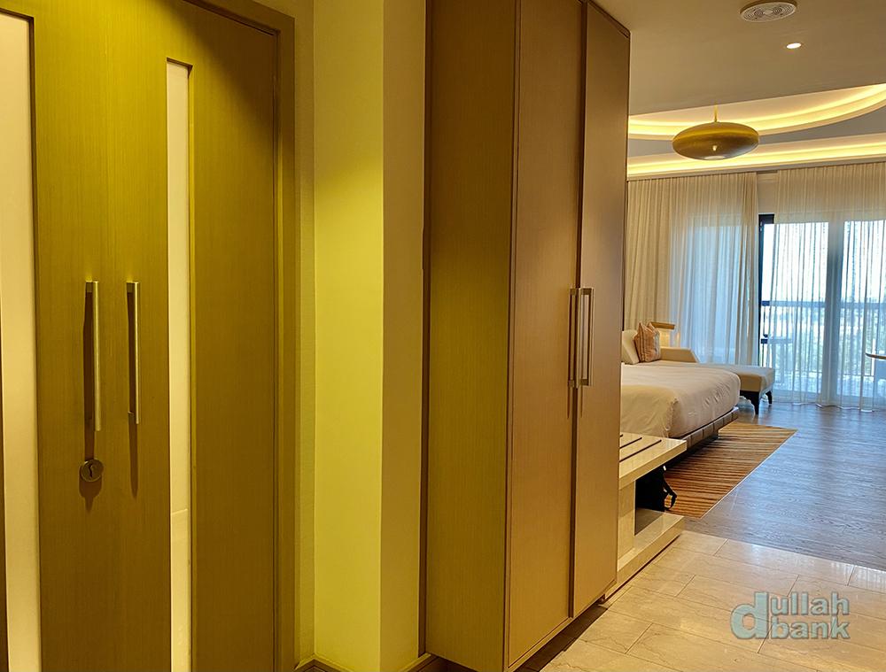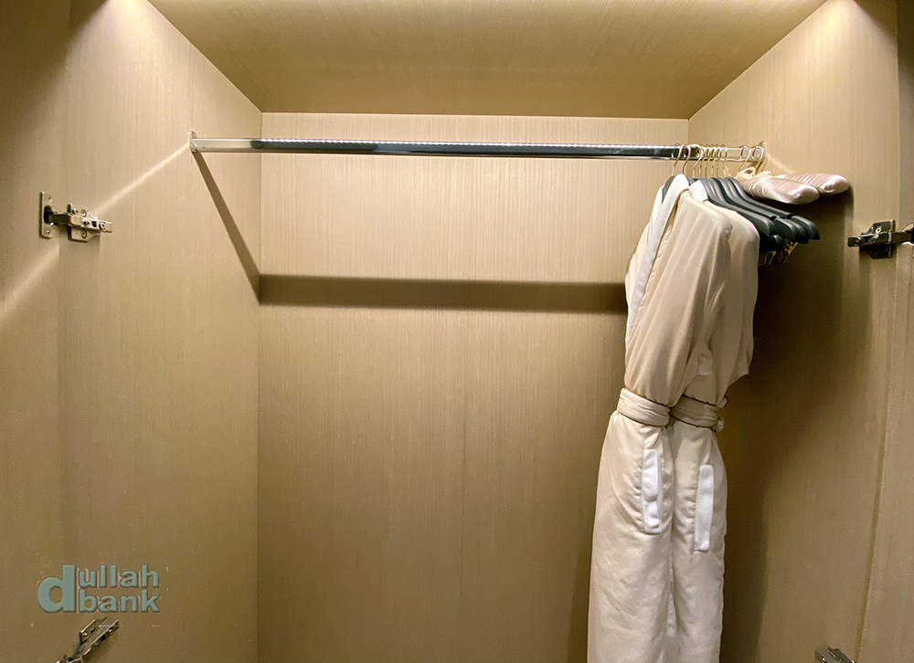 화장실과 미니바 맞은편에는 옷장과 수납장이 있습니다.