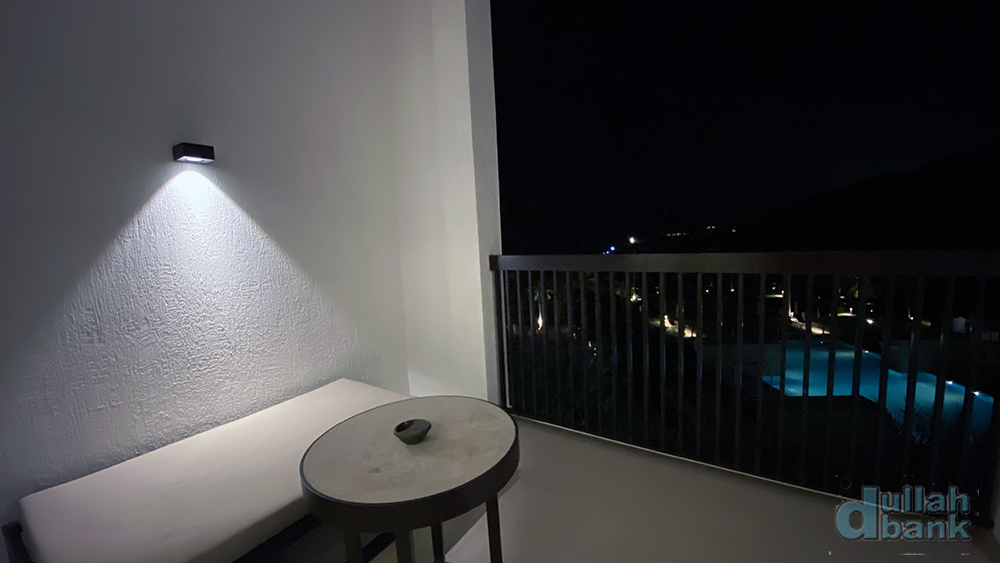 발코니의 조명은 벽 중간에 자리잡고 있고.