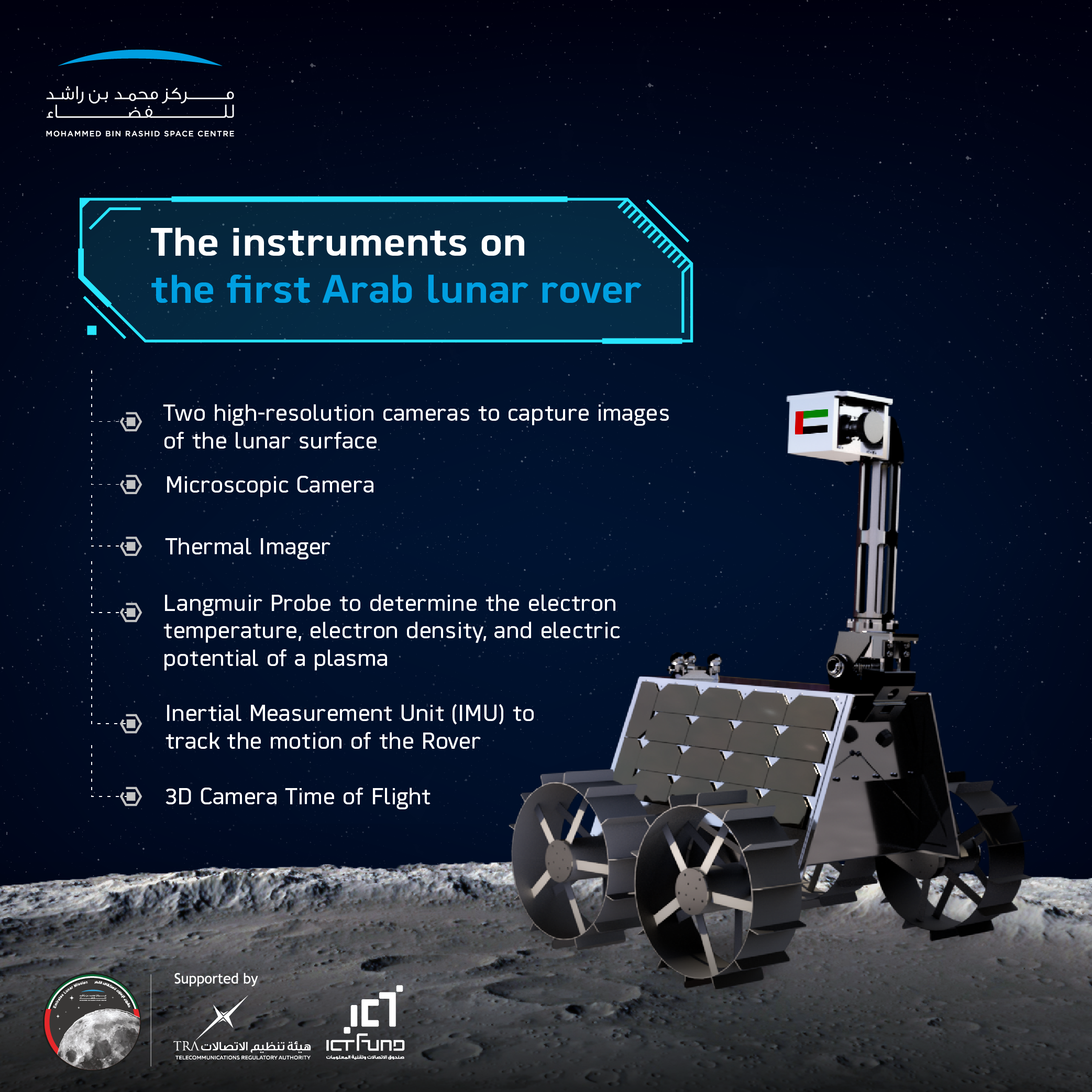 아말을 무사히 우주로 쏟아올린 후인 지난해 9월에는 이 기세를 이어 달 탐사를 위한 탐사 로버 라쉬드를 2024년에 발사할 계획이라고 발표했으나, 지난 4월 이 일정을 앞당겨 내년 4분기에 발사할 계획임을 밝혔지만, 이번 인터뷰를 통해 내년 8월~12월 사이에 발사를 목표로 하고 있음이 확인되었습니다.