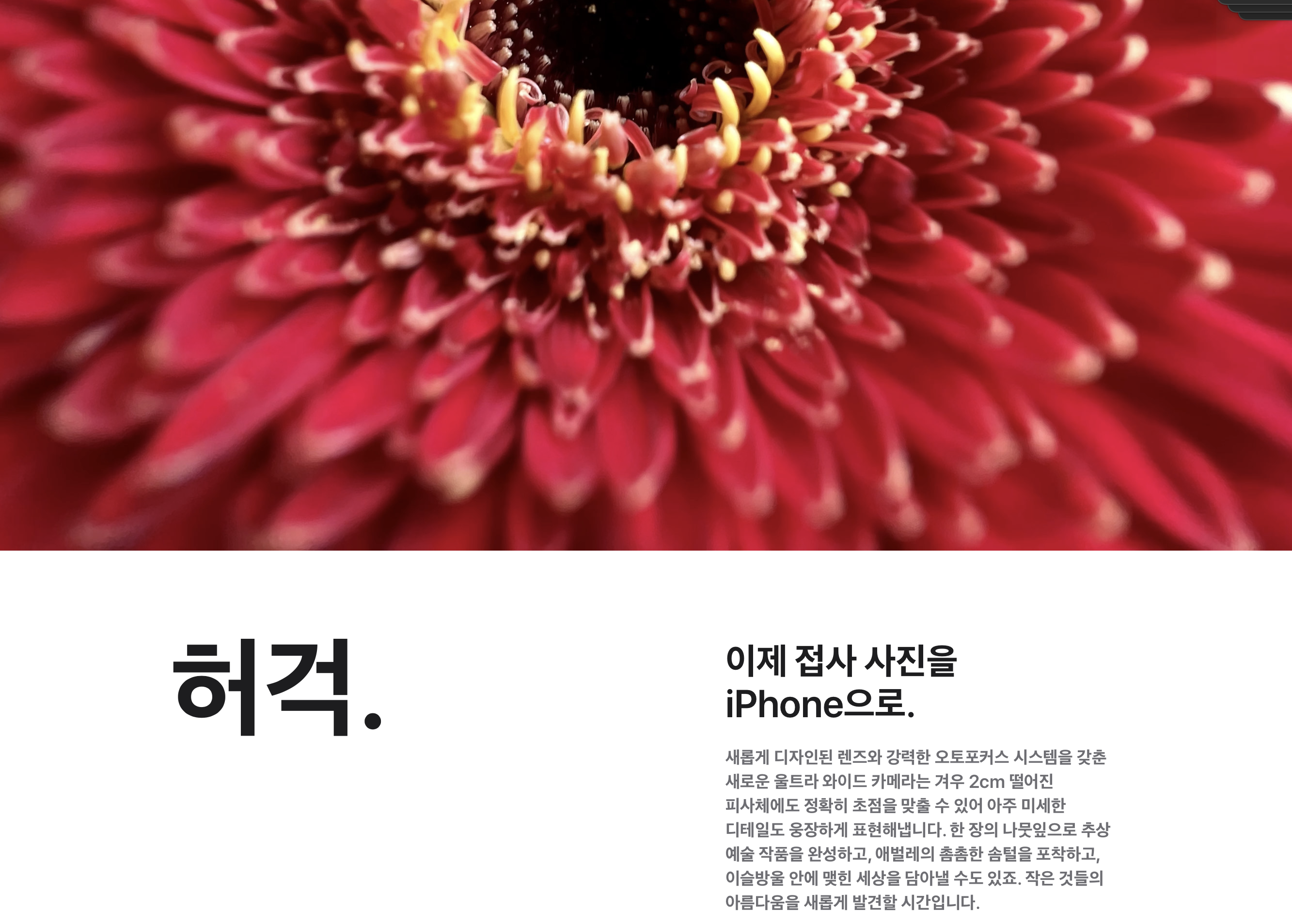 어마무시한 렌즈 섬과 함께 카메라 시스템을 대폭 업그레이드했다는 아이폰 13 프로 모델의 카메라 소개에서 가장 먼저 나오는 포인트는 바로 접사 사진입니다.