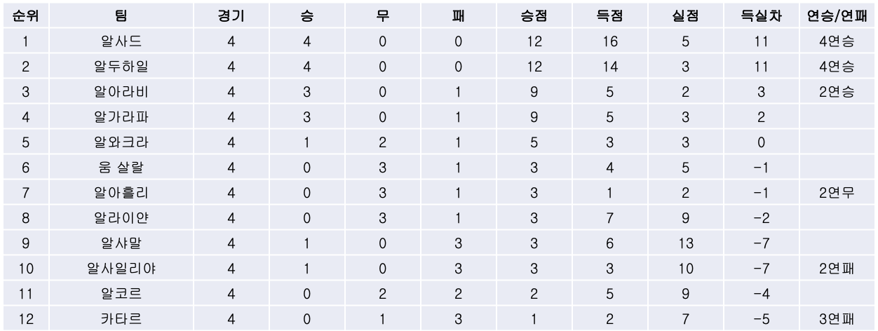 1. 경기 결과