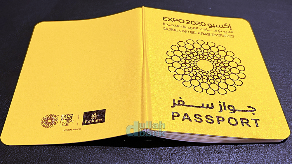 두바이 엑스포 기념 여권은 일반 여권과 같은 크기에 골드를 사랑하는 두바이답게 노란색 표지에 전면에는 엑스포 로고가 가운데 박혀 있습니다.