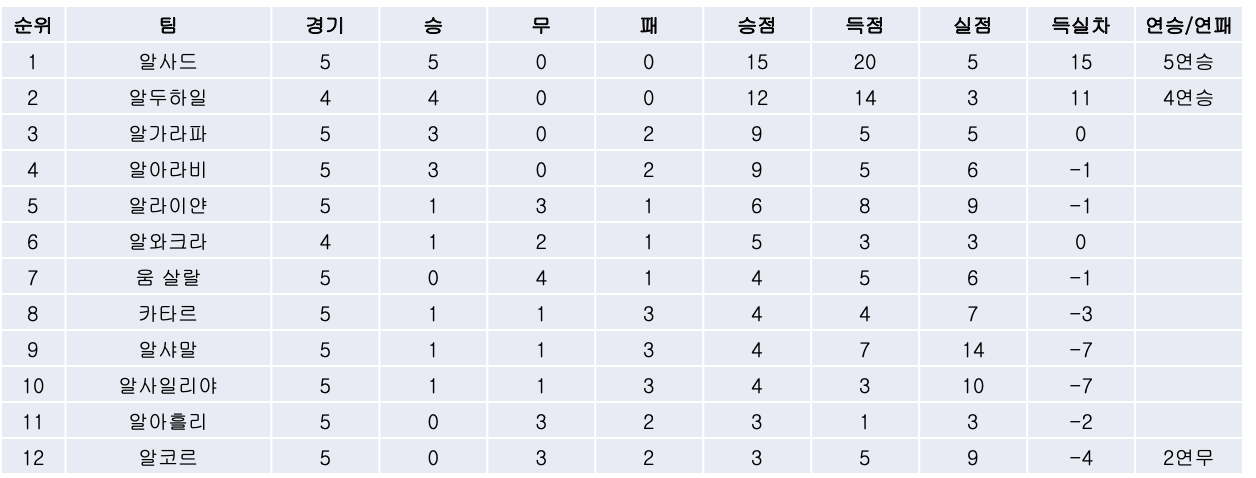 2. 리그 순위