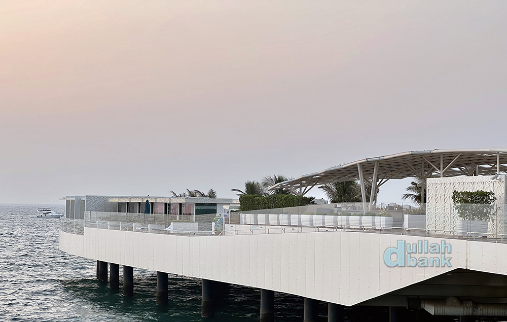 아래 보이는 초대형 플랫폼 테라스. 부르즈 알아랍 개장 이후 첫 확장구역인 이 테라스는 핀란드에서 공수해온 6개의 플랫폼을 조립해 만들어 2017년에 문을 열었으며, 두 개의 풀장과 라운지 살, 구찌 매장이 있습니다.
