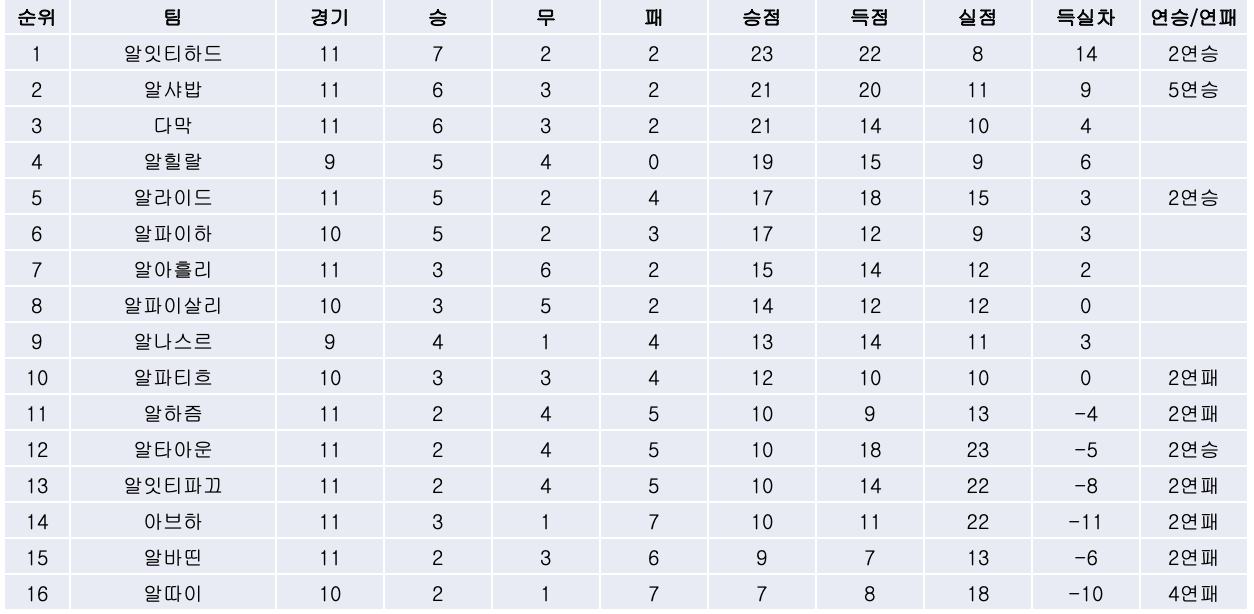 | [21/22 MBSPL 9R] 깜짝 선두에 오른 다막, 극장골로 승리한 알힐랄과 강등권 팀에게 패해 희비가 엇갈린 알나스르! (0) | 2021.10.25 |