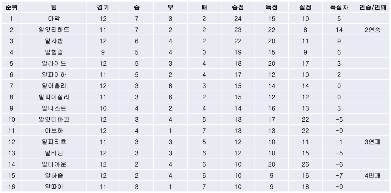 2. 리그 순위