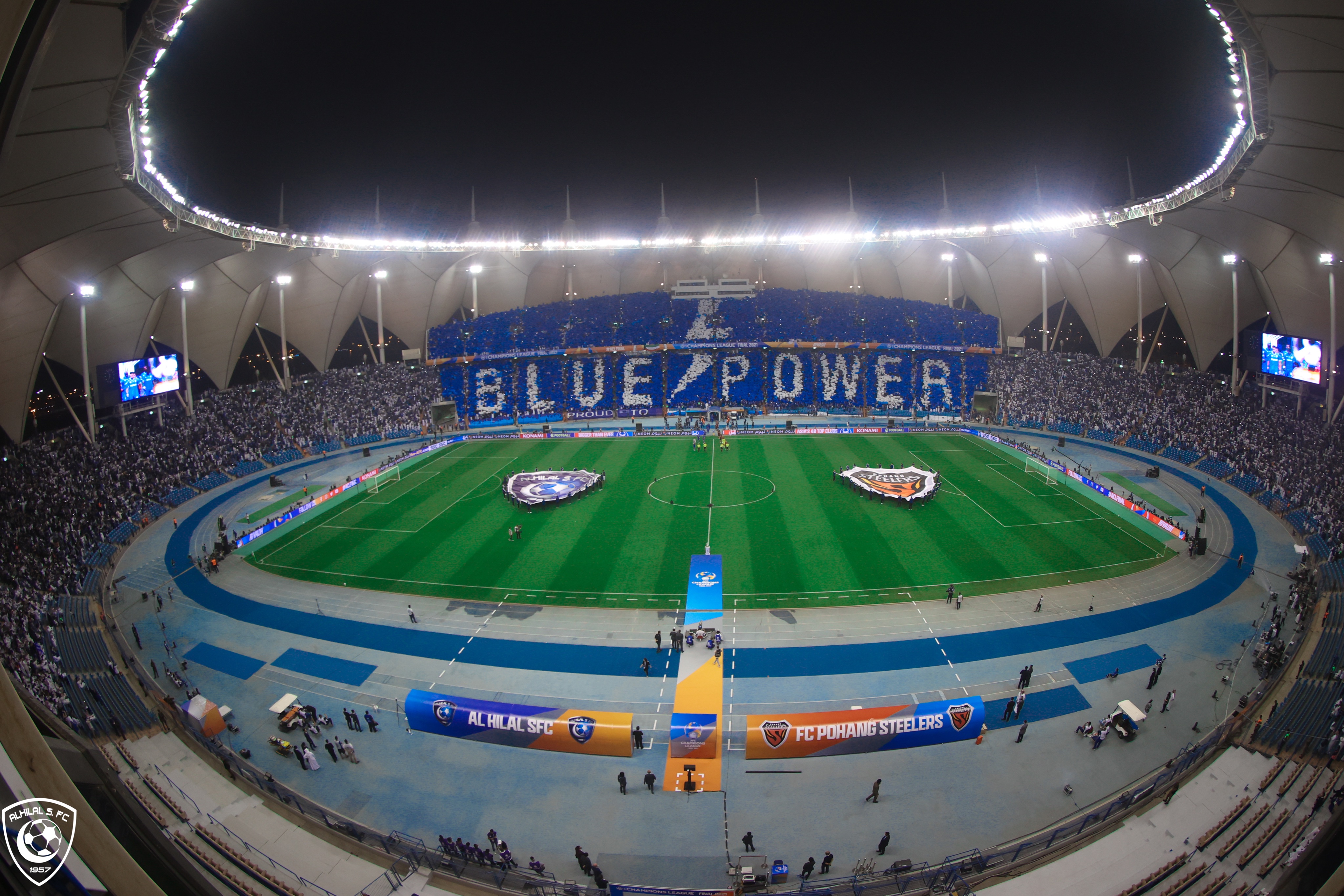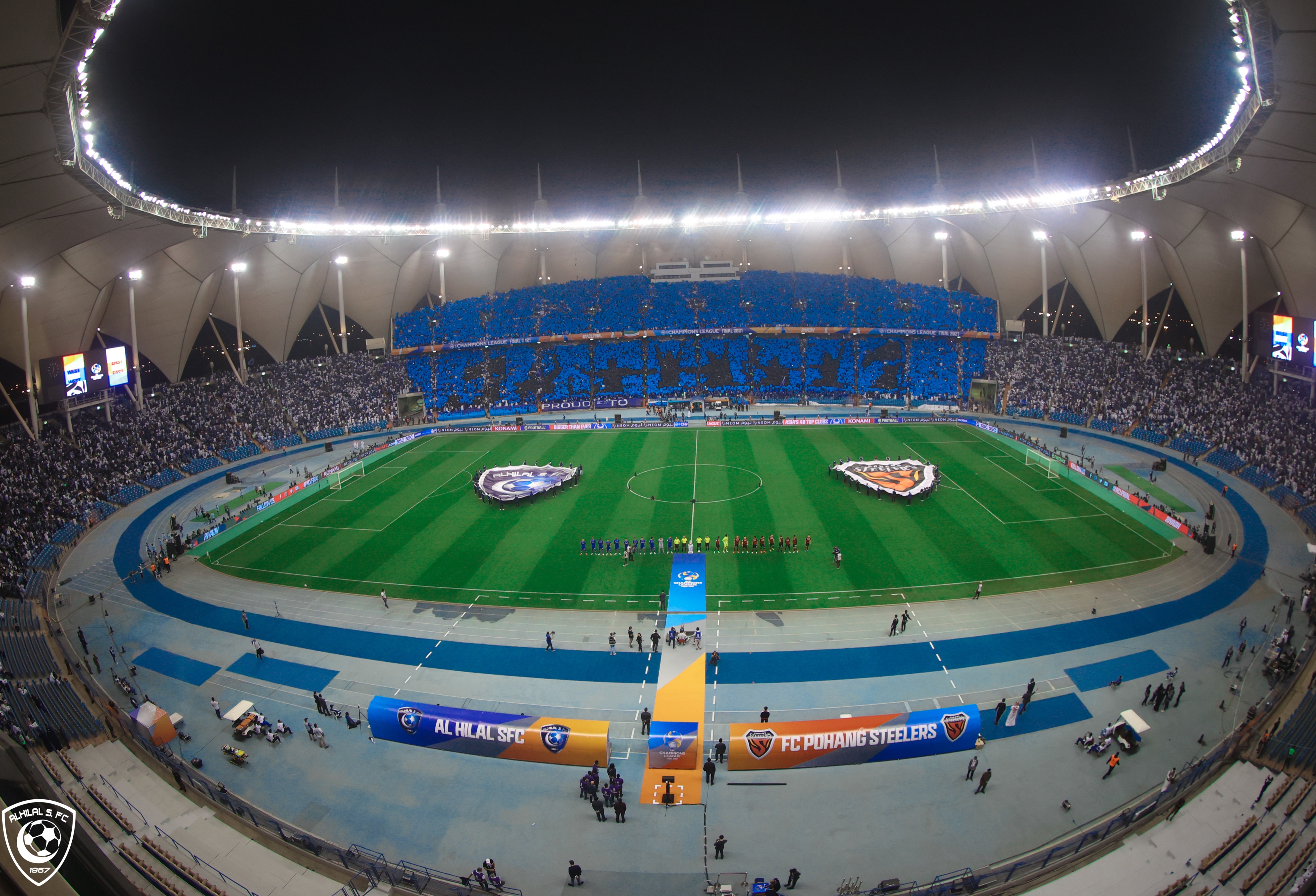 4) 입장제한이 완전히 풀린 가운데 알힐랄 서포터즈들은 오랜만에 대형 티포를 준비했습니다. 오늘 경기의 관중수는 50,171명.
