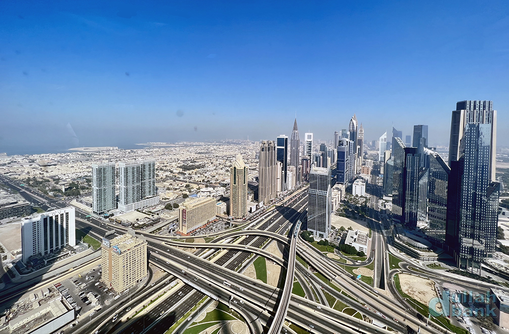 나갈 때도 바다를 배경으로 다운타운 두바이 맞은편 뷰를 볼 수 있습니다.