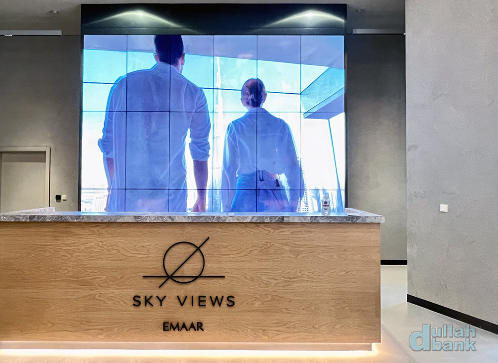 다운타운 두바이 일대를 색다르게 바라보게 될 것이란 홍보와 달리 내내 조용하다가 2021년 4분기나 되어서야 스카이 뷰라는 공식 이름과 함께 본격적인 티저 홍보를 내보내기 시작했습니다. 스카이 뷰가 자리잡은 위치는 쌍동이 빌딩 한쪽에 갑툭튀한 부분입니다.