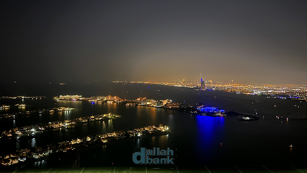 팜 주메이라의 이스트 윙 끝부분까지 호텔과 리조트들이 영업 중이기에 맞은 편 웨스트 윙보다 환한 조명이 눈에 들어옵니다.