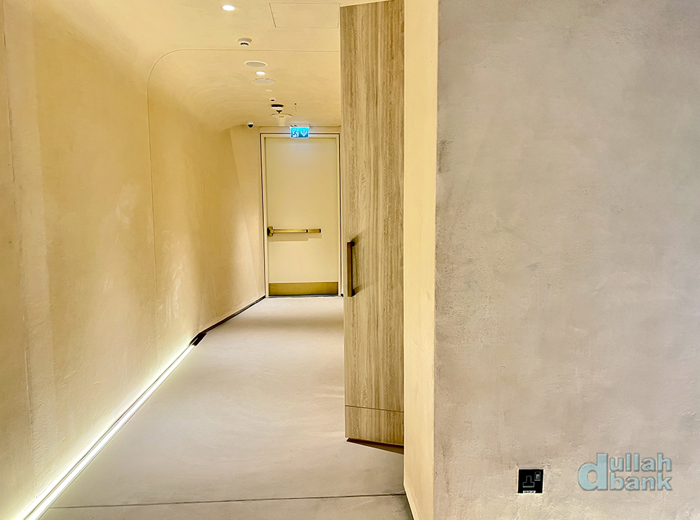 탈의실은 안내 데스크와 라운지를 연결하는 통로에 있는 계단을 이용하거나 맞은편의 엘리베이터를 타고 한 층만 내려가면 됩니다.