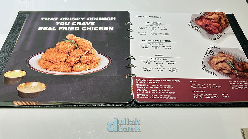전용 공간 없이 푸드코트 내 부스에 있어 푸드코트 공용 테이블을 공유하고 있는 네네치킨 두바이 1호점과 달리 교촌치킨 두바이 1호점은 약 165㎡(50평), 58석 규모의 배달을 겸한 레스토랑으로 자리잡고 있어 네네치킨처럼 자리를 찾아 푸드코트를 방황하지 않아도 된다는 장점이 있네요.