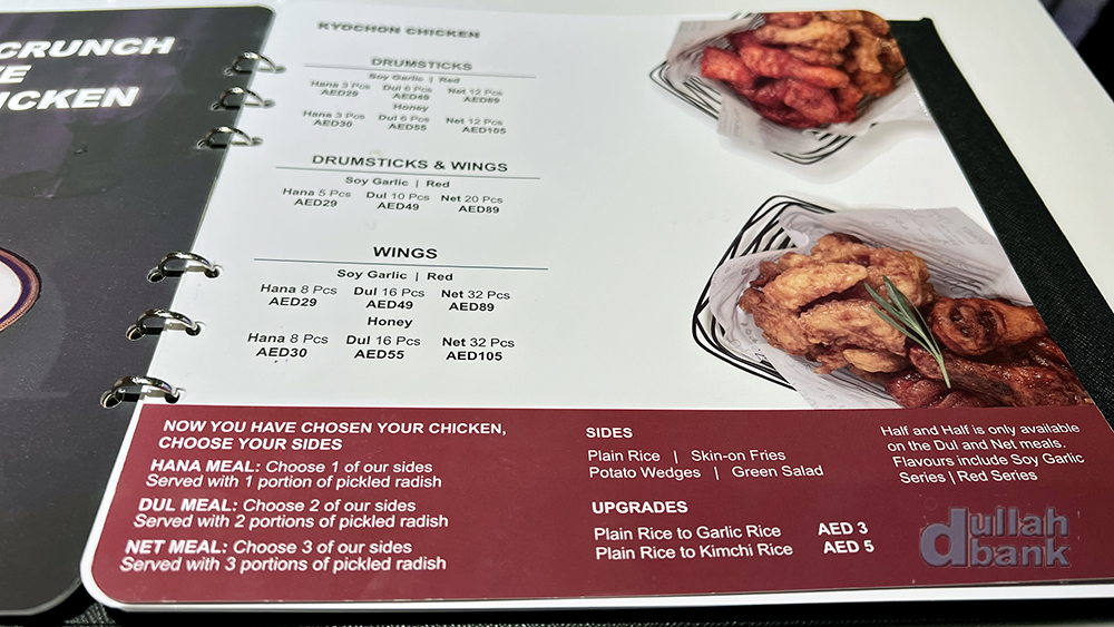 전용 공간 없이 푸드코트 내 부스에 있어 푸드코트 공용 테이블을 공유하고 있는 네네치킨 두바이 1호점과 달리 교촌치킨 두바이 1호점은 약 165㎡(50평), 58석 규모의 배달을 겸한 레스토랑으로 자리잡고 있어 네네치킨처럼 자리를 찾아 푸드코트를 방황하지 않아도 된다는 장점이 있네요.