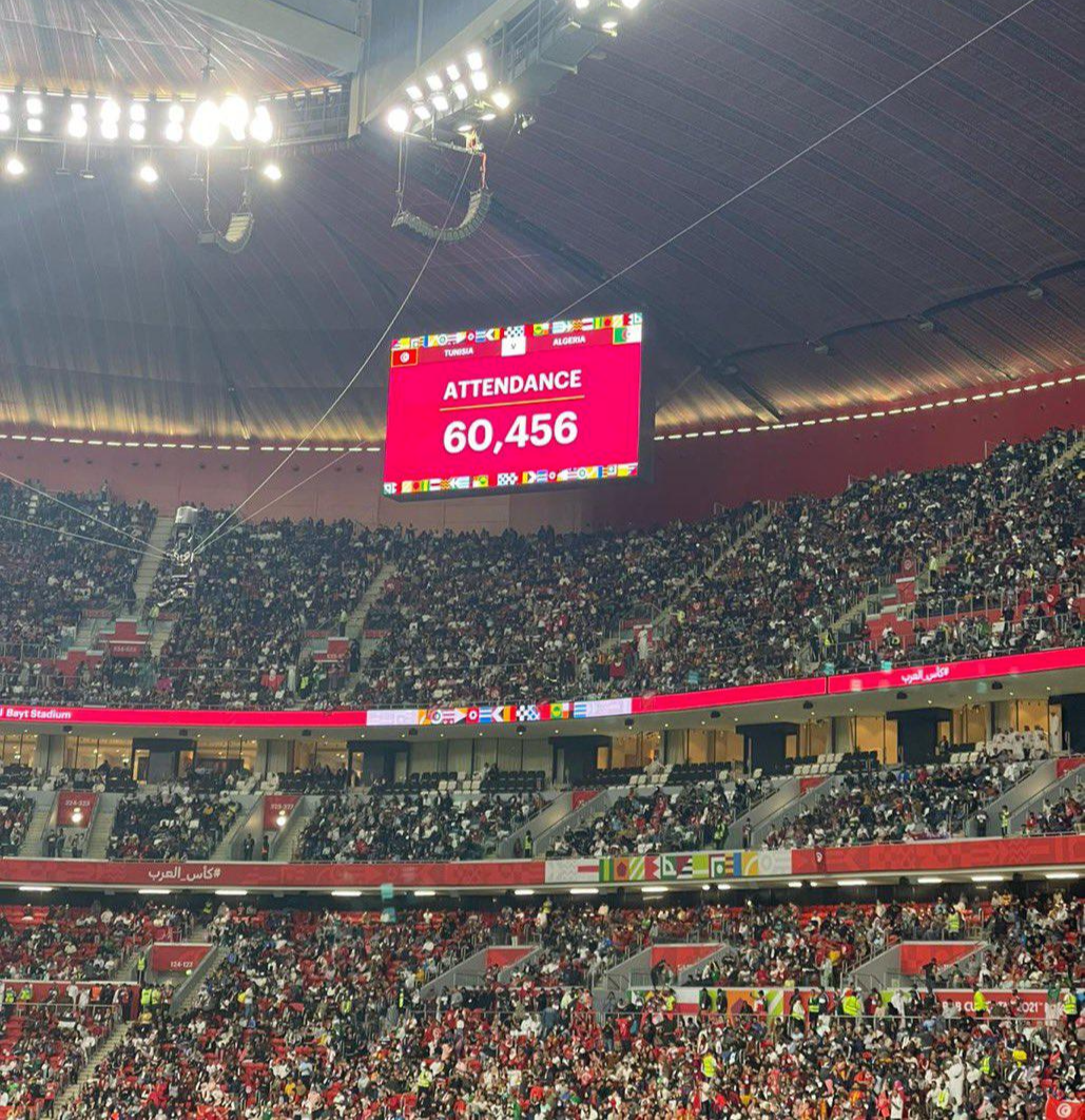 7) 튀니지와 알제리의 결승전에는 60,456명의 관중이 경기장을 찾았습니다. 카타르가 결승에 올라갔으면 새 기록을 세웠을 수도 있었겠습니다만...