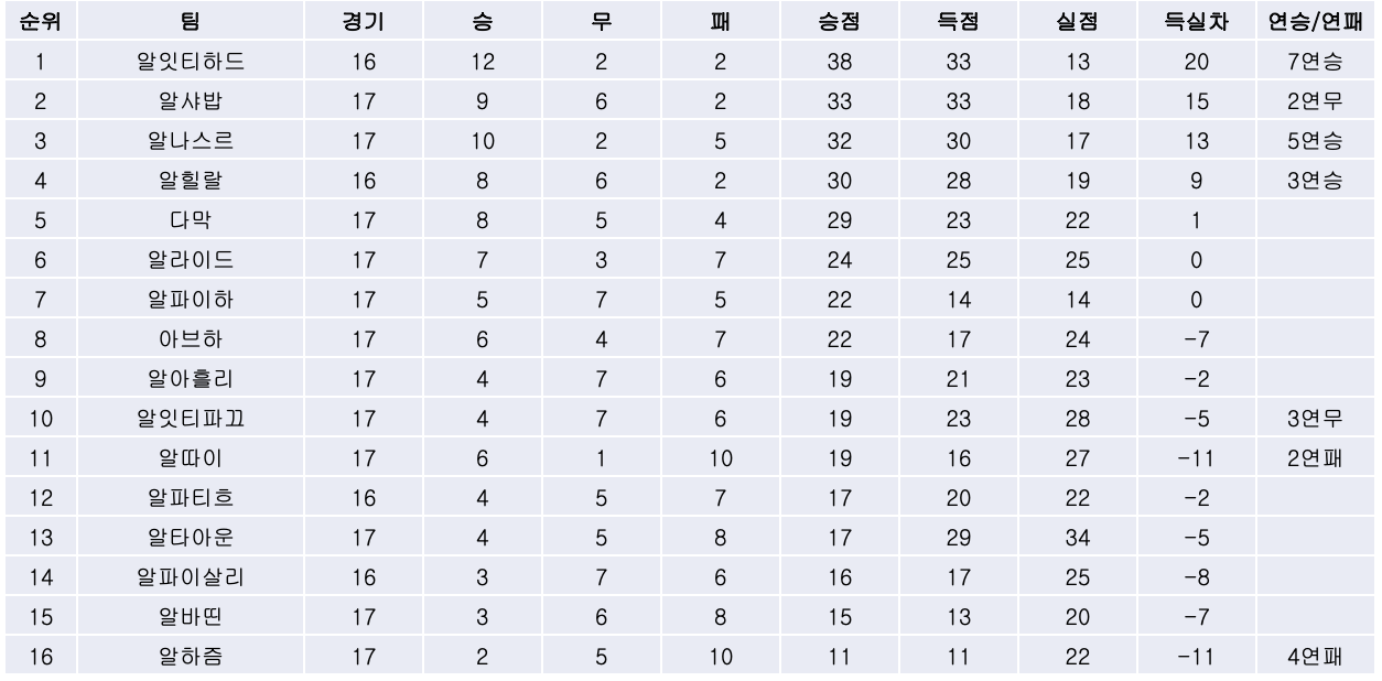 2. 리그 순위