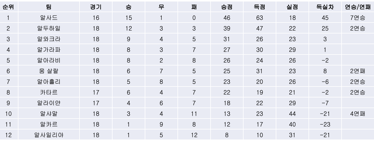 | 알아라비 | 알아흘리 |