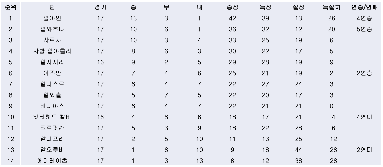 | [21/22 APL 18R] 알와흐다, 6연승을 거두고 비긴 선두 알아인과의 승점차를 좁혀! (0) | 2022.03.07 |