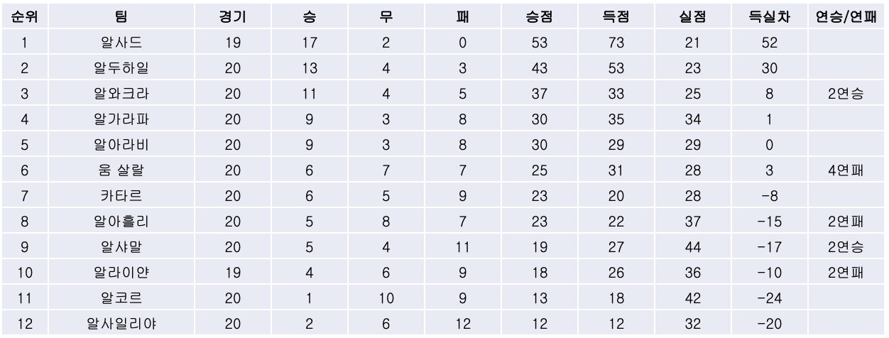 2. 리그 순위