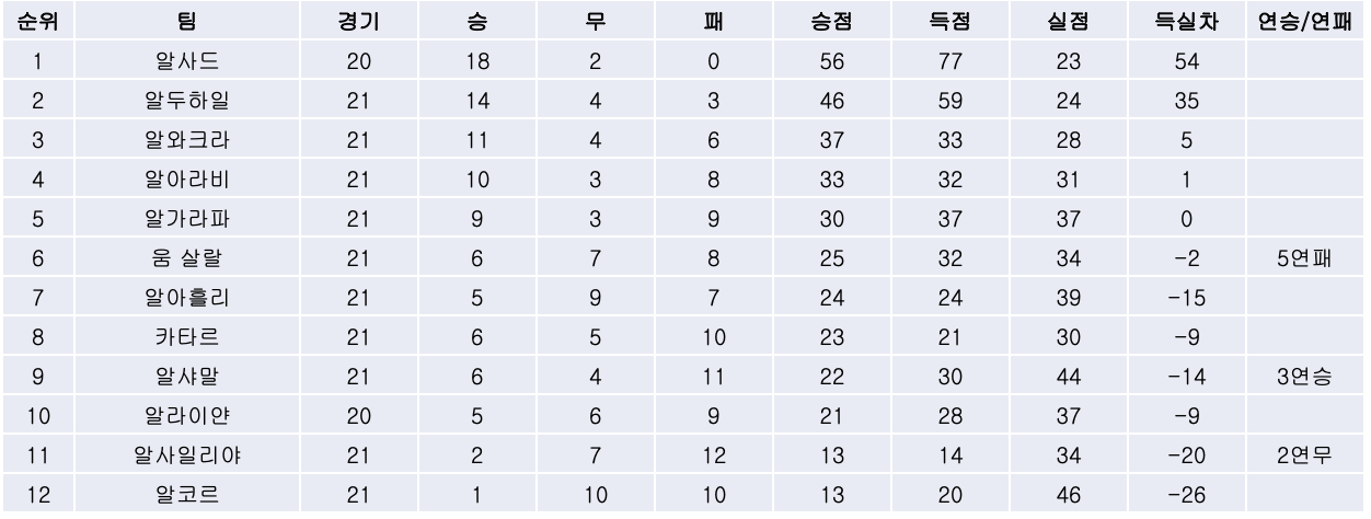 2. 리그 순위