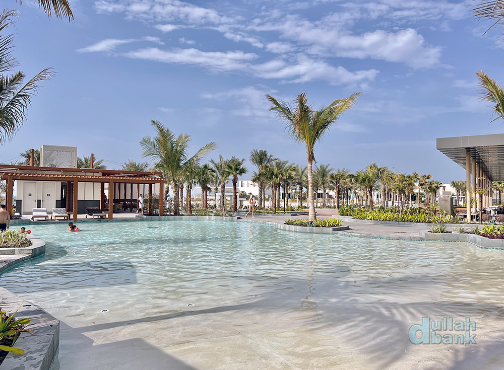 메인 풀장은 아이가 있는 가족들을 위해 수면이 얕은 구역과