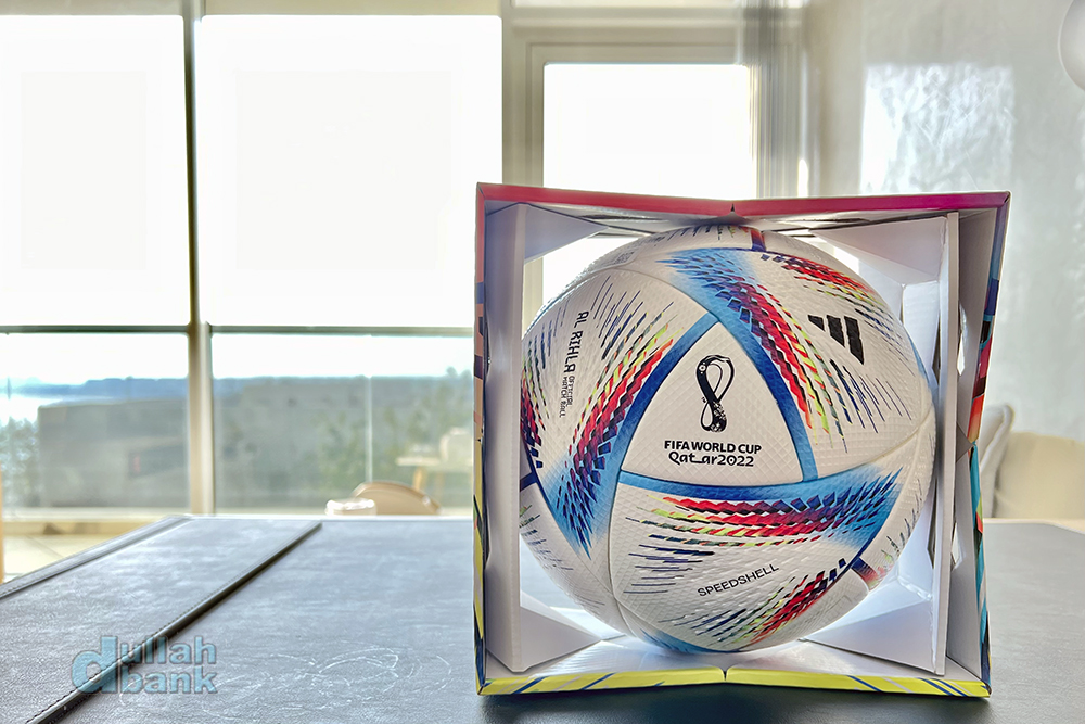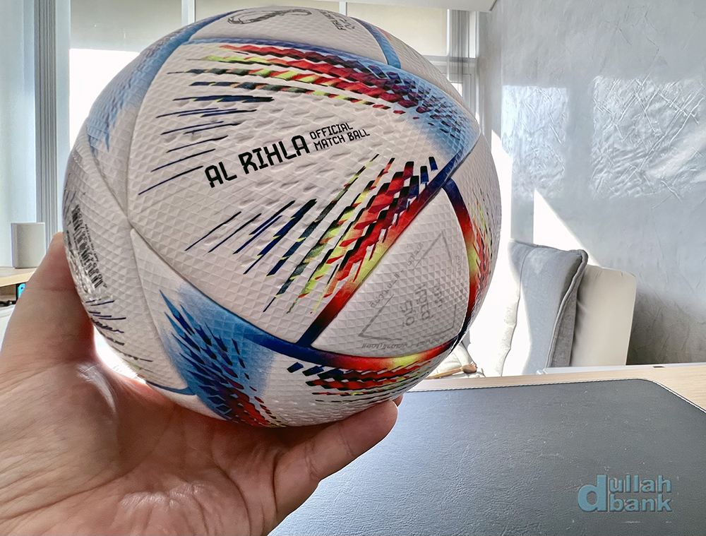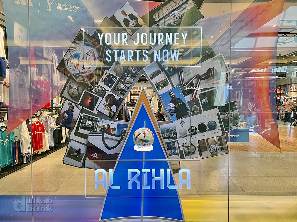 주말을 맞아 몰 오브 에미레이츠를 둘러보다 아디다스 매장 앞에서 시선이 멈췄습니다. 이틀 전 공개된 카타르 월드컵 공인구 알리흘라가 전시되어 있었거든요.