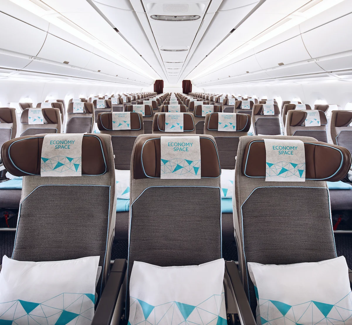 혁신적인 리클라인 시스템이 도입되고 첫 다섯 열 (45석)을 이코노미 스페이스석은 레그룸이 10cm 더 주어집니다.